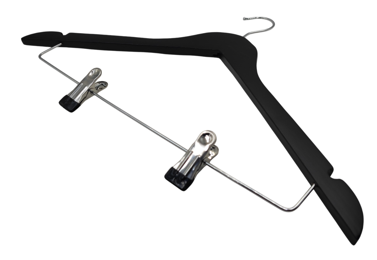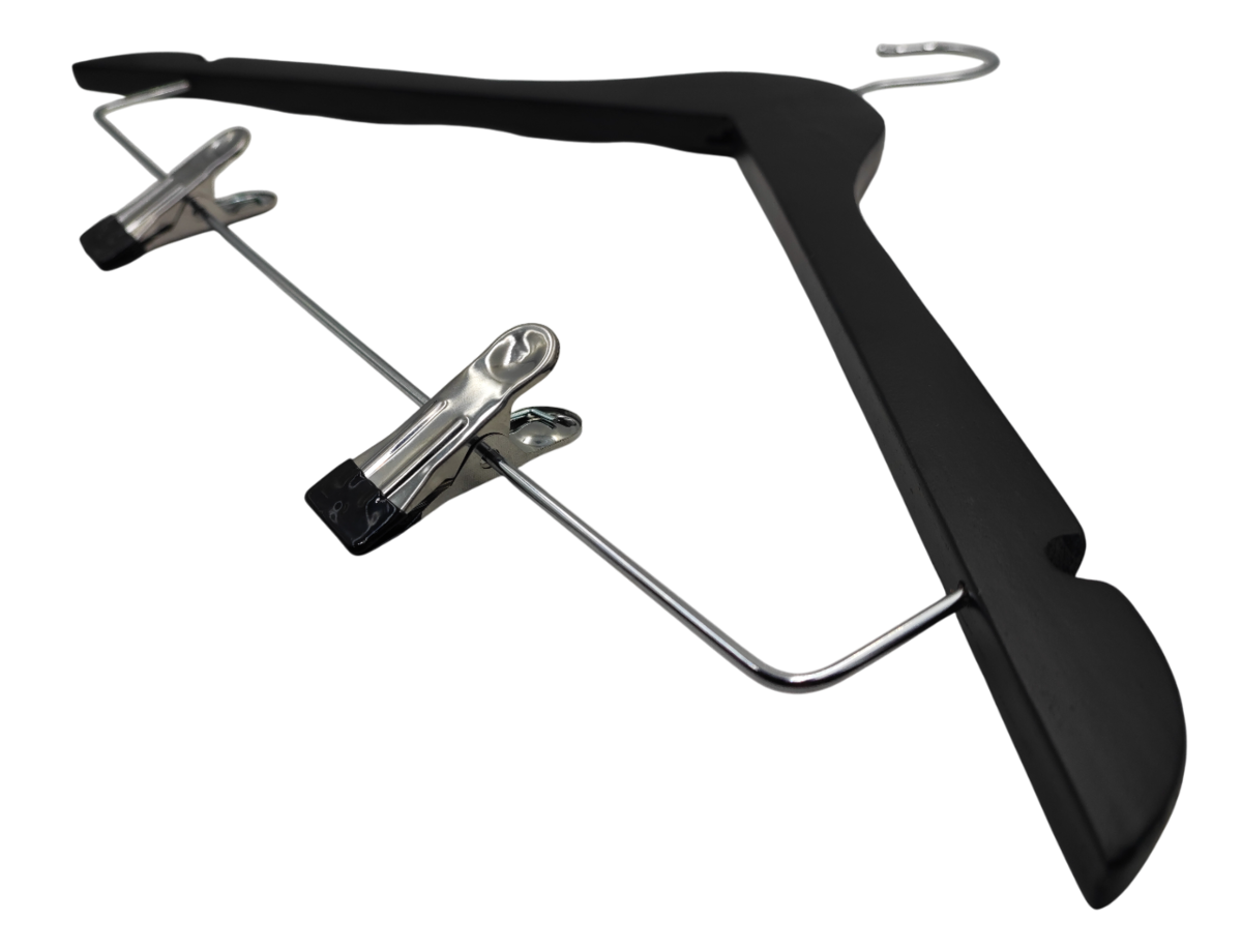 Плечики дерев'яні з затискачами та гачком, 45cм*1,2cм, чорні, ящ.: 100