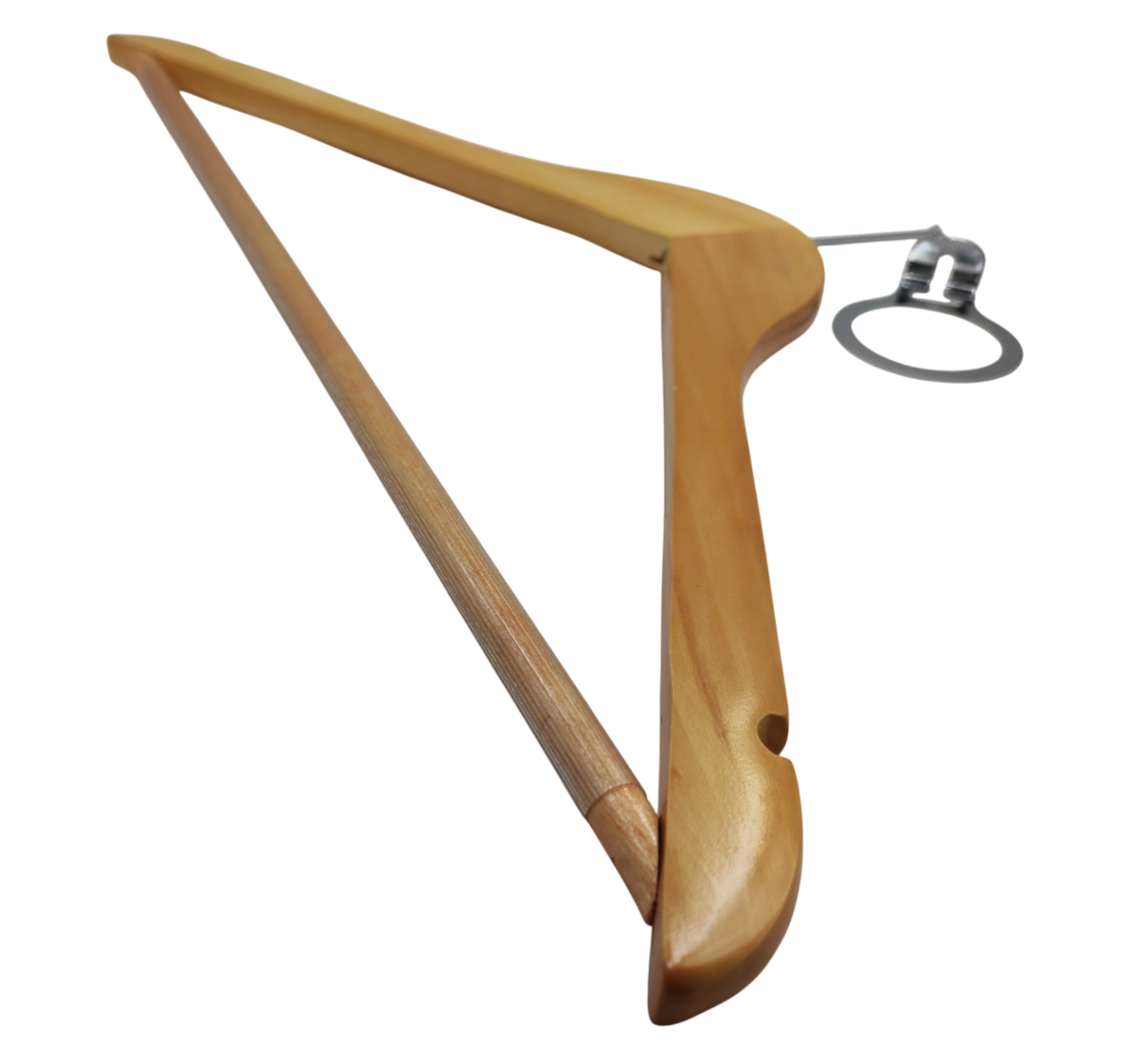 Плечики дерев'яні з брючною планкою і кільцем, 45cм*1,2cм, світле дерево, ящ.: 100